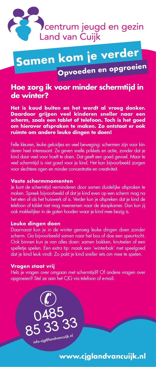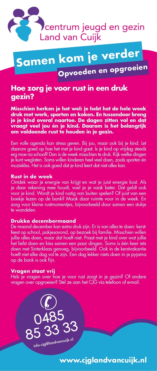 Even voorstellen: Mijn naam is Renate Eggenkamp en ik ben werkzaam als jeugdconsulent bij het Centrum Jeugd en Gezin Land van Cuijk (CJG).
